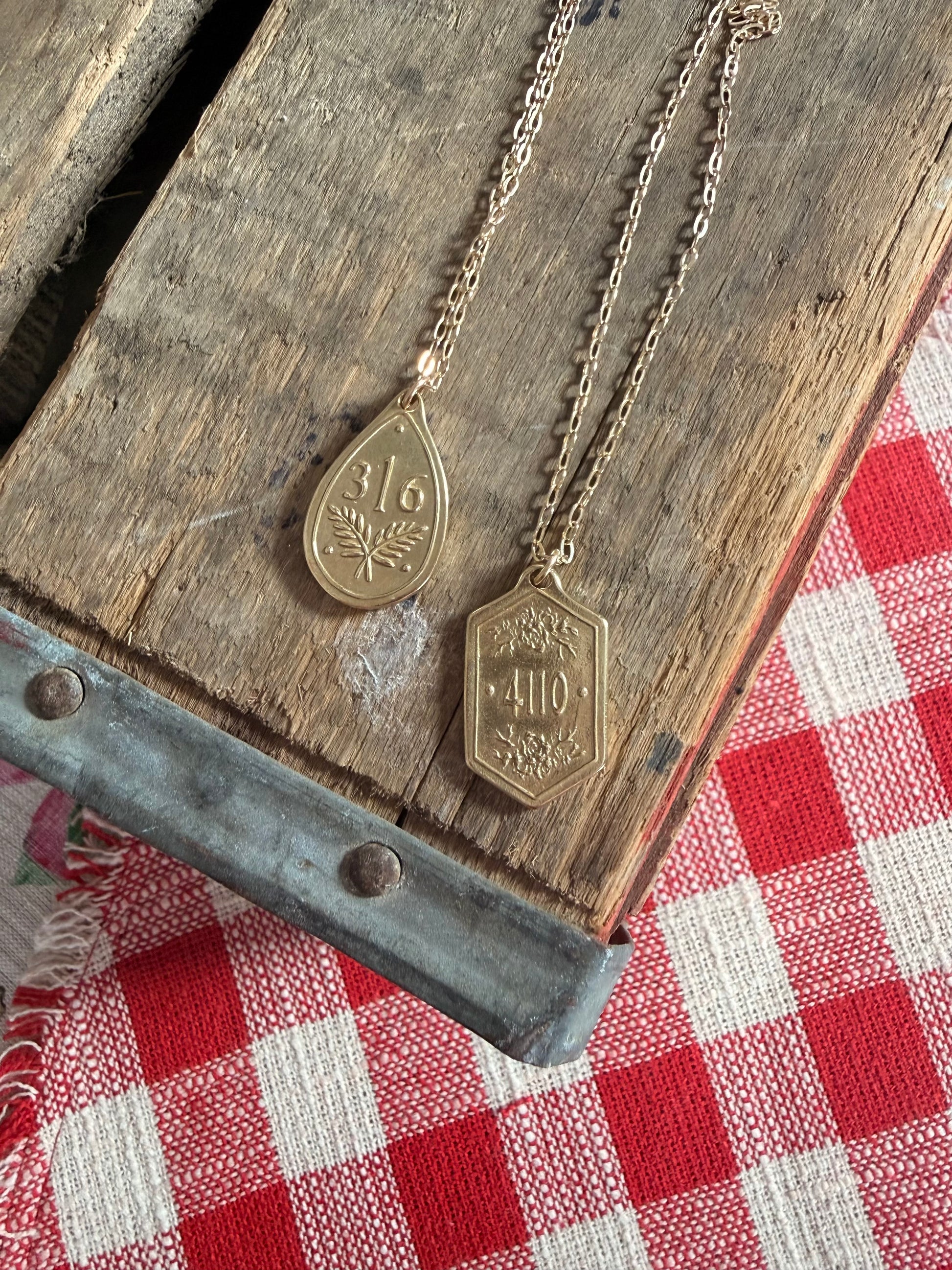 Each necklace includes a branded jewelry pouch and a pre attached verse tag that corresponds to the numbers on the pendant.