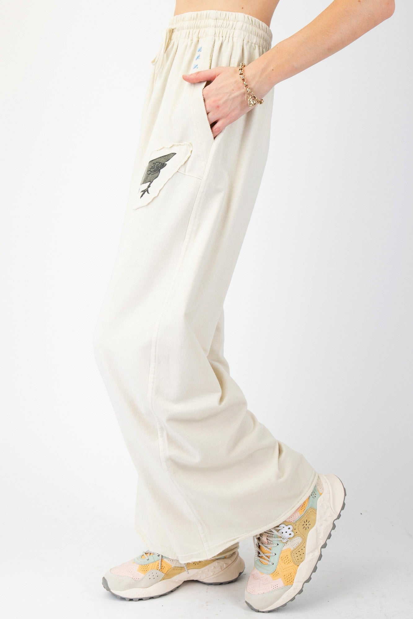 Fly into comfort with our mineral washed Bird Patch Terry Knit Pant. Our soft terry knit material will have you feeling light and airy, while the bird patch detail adds a touch of whimsy. Perfect for lounging or running errands.