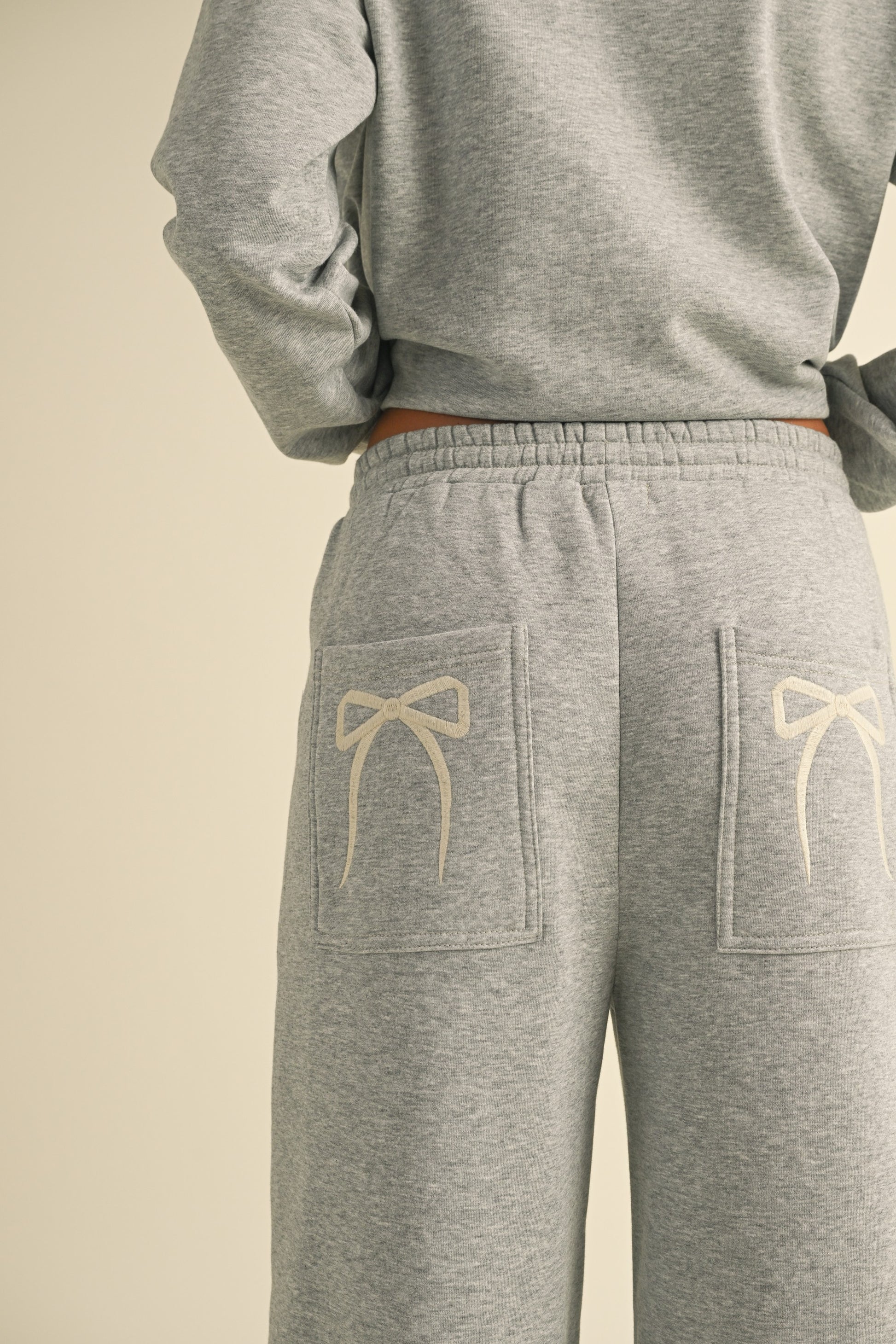 Introducing our Bow Embroidered Sweatpants- the ultimate in comfort and style. Made from French Terry fabric, these wide-legged pants feature a bow embroidered back pocket for a touch of uniqueness. Lounge in luxury with these fashion-forward sweatpants!