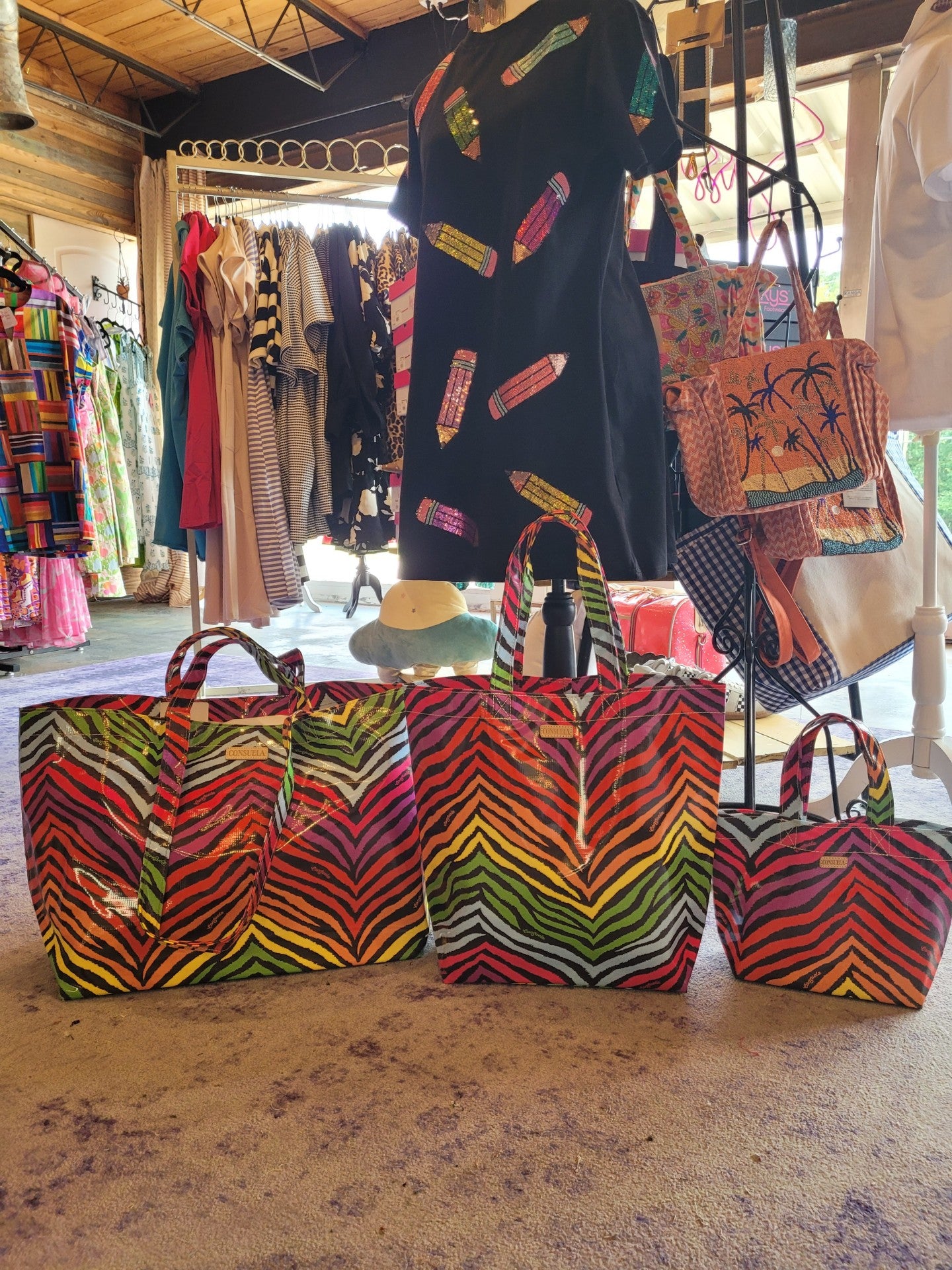 Make a bold statement with the Consuela Grab n Go Tote in Flo. Featuring a vibrant zebra print on durable vinyl, this eye-catching bag combines style and practicality. Spacious enough for everyday essentials, it’s perfect for on-the-go use while adding a splash of color to your outfit. Durable, easy to clean, and designed for convenience, this tote is your new go-to for effortless fashion wherever life takes you.