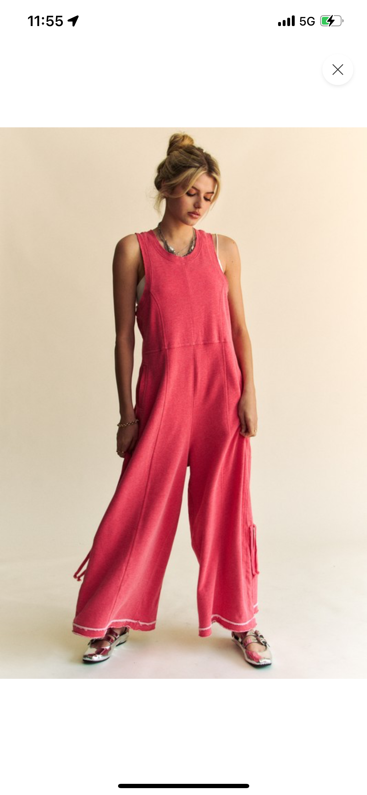 This sleek Coral Me Later Jumpsuit features raw edge detailing and a cinched leg design for a modern and fashionable look. Made from high-quality materials, this jumpsuit provides both style and comfort. Perfect for any occasion, this jumpsuit will have you looking effortlessly chic.
