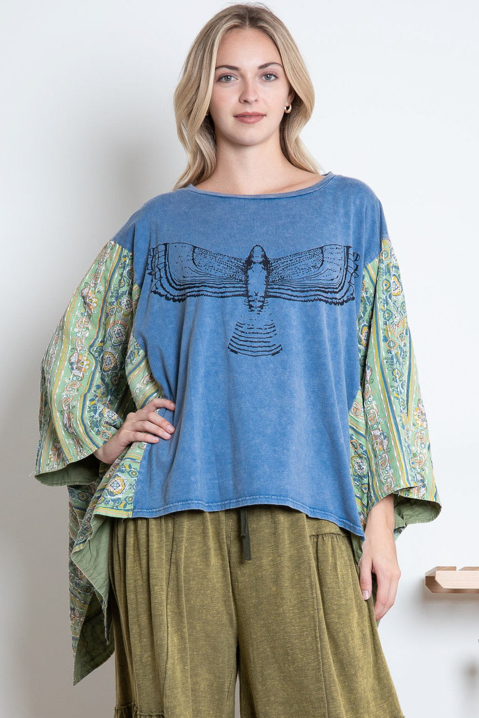 Feel free as a bird in our Fly Like an Eagle Over Sized Tee. With mixed pattern sleeves and a bold eagle print, you'll stand out from the crowd. This oversized tee brings comfort and style together for a look that will make you soar!
