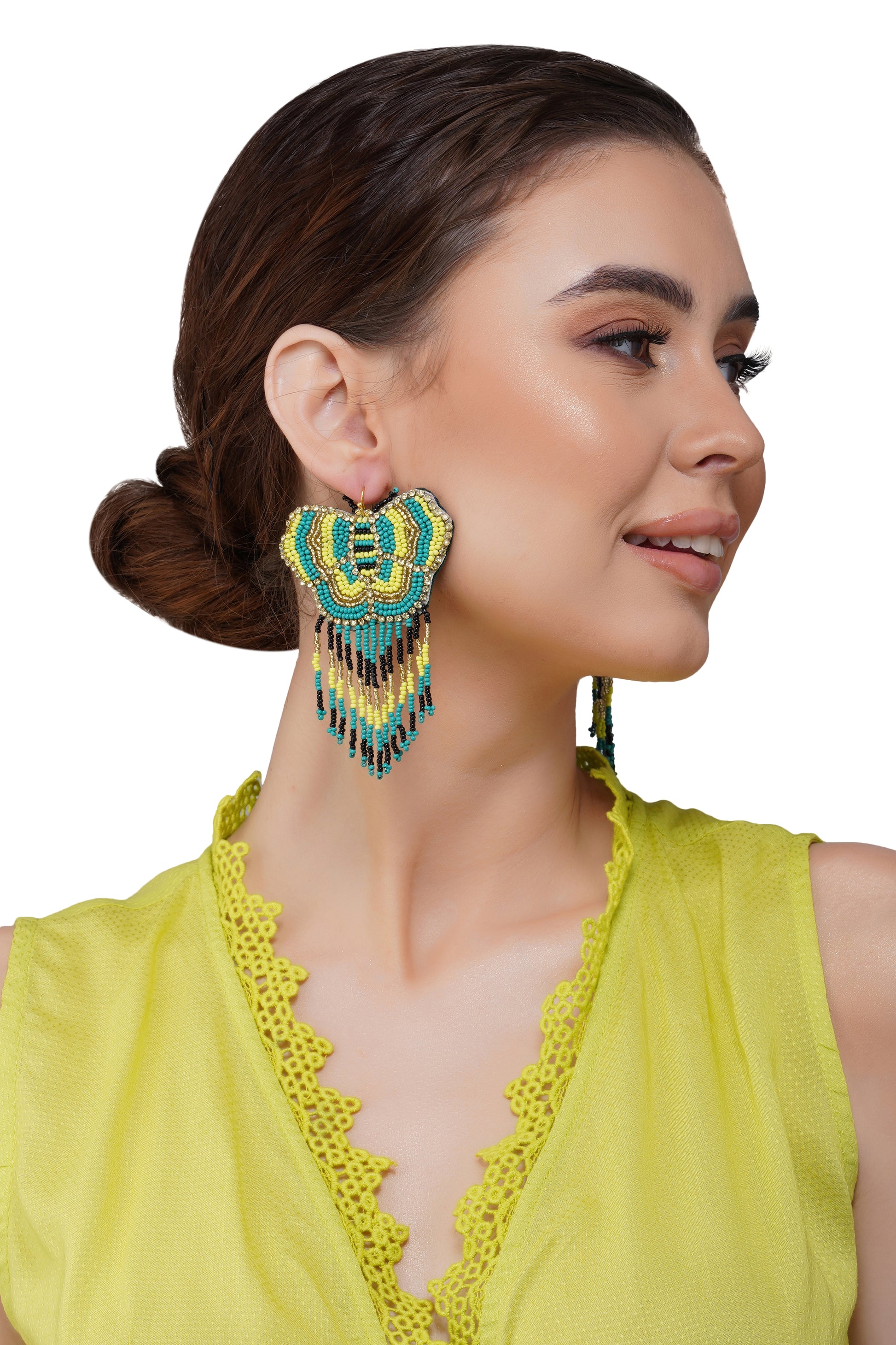 Add a pop of color and playfulness to your outfit with our Green Beaded Butterfly Earrings! These statement earrings feature a vibrant chartreuse and dark green color palette, making them perfect for any occasion. Embrace your quirky side and stand out in style.