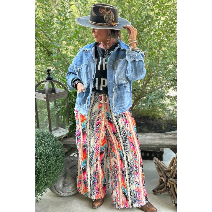 Experience the free-spirited vibes with our Jaded Gypsy Rainbow in the Sky Pants. The multi-color fabric adds a pop of fun to your outfit while the elastic waist ensures a comfortable fit. Embrace your inner hippie and rock these pants with confidence!