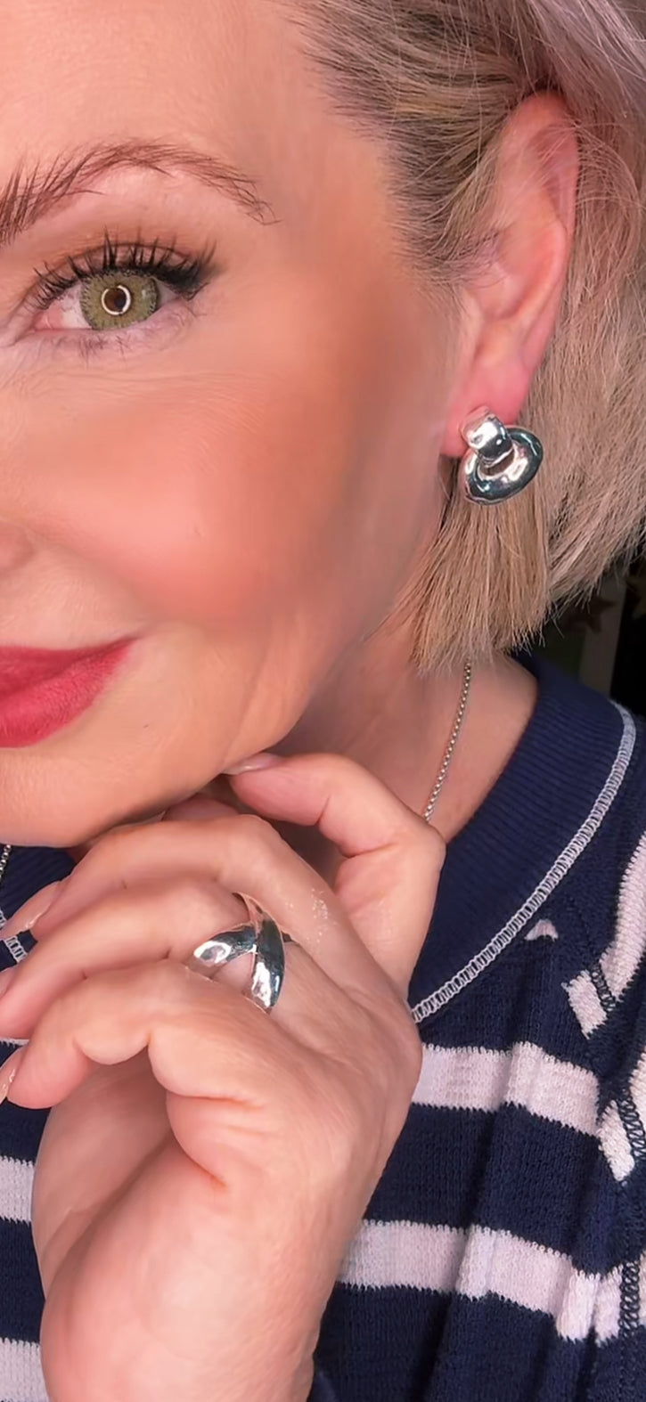 This small stylish earring is lightly hammered and feels charmingly organic, yet polished and pulled together.