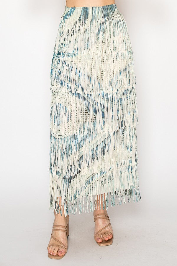Elevate your style with the Layered Fringe Tiered Skirt, featuring a trendy faux denim fabric that blends casual cool with effortless comfort. The elastic waist ensures a perfect fit, allowing you to move freely while highlighting your silhouette. Its layered fringe design adds playful texture and dynamic movement, making it an eye-catching addition to any outfit. Perfect for dressing up or down, this skirt effortlessly brings a fresh, fashion-forward edge to your wardrobe.