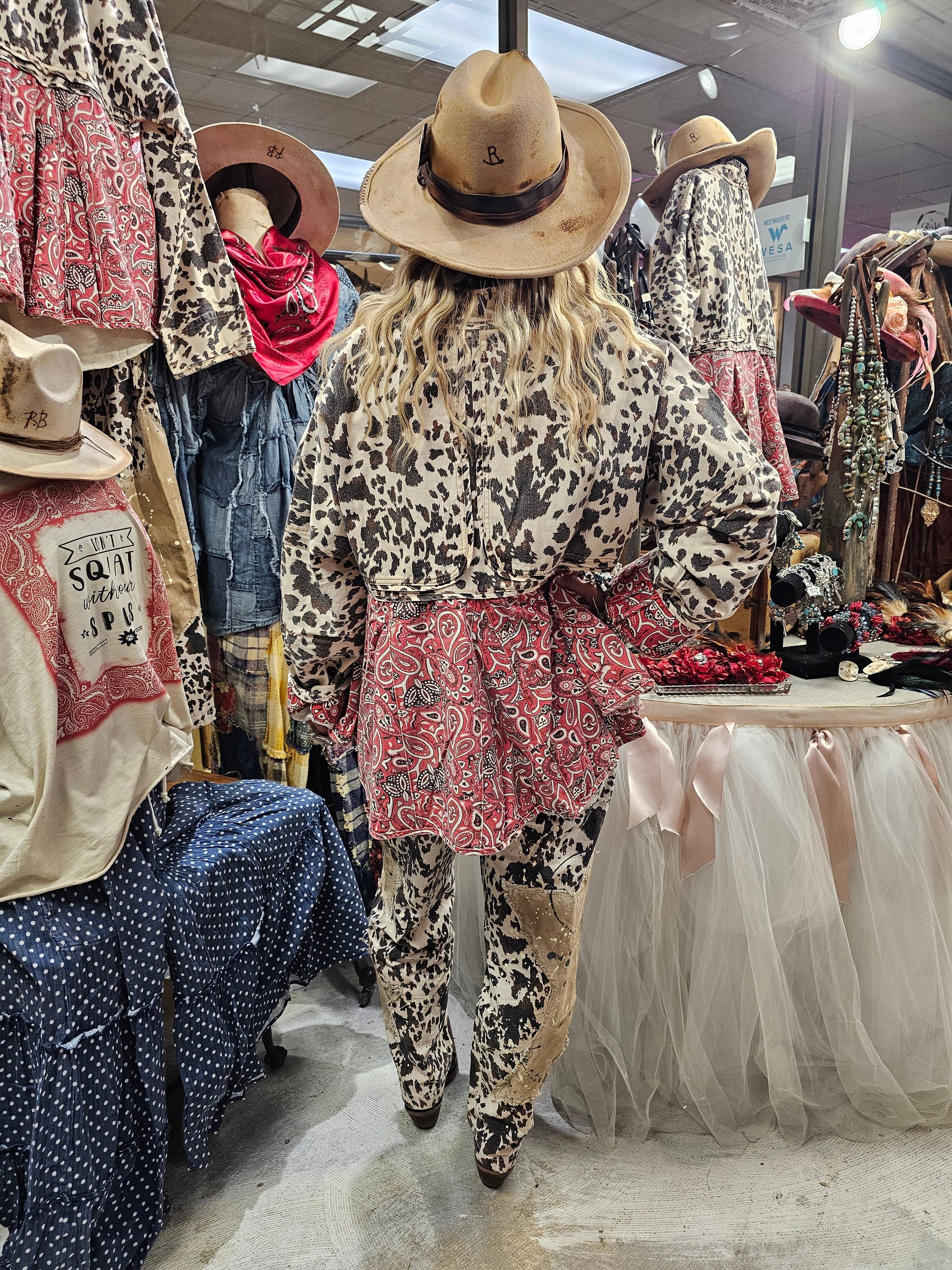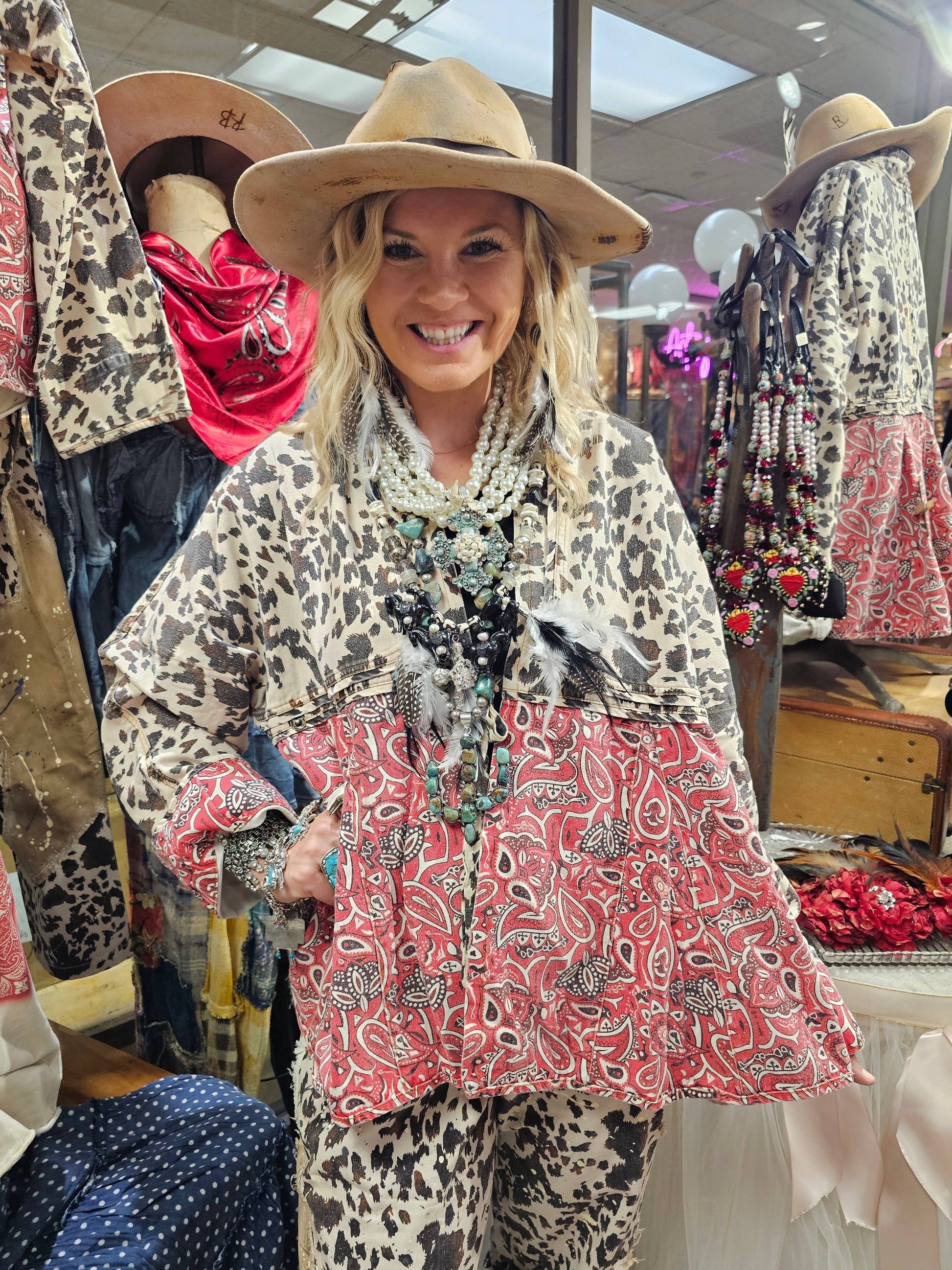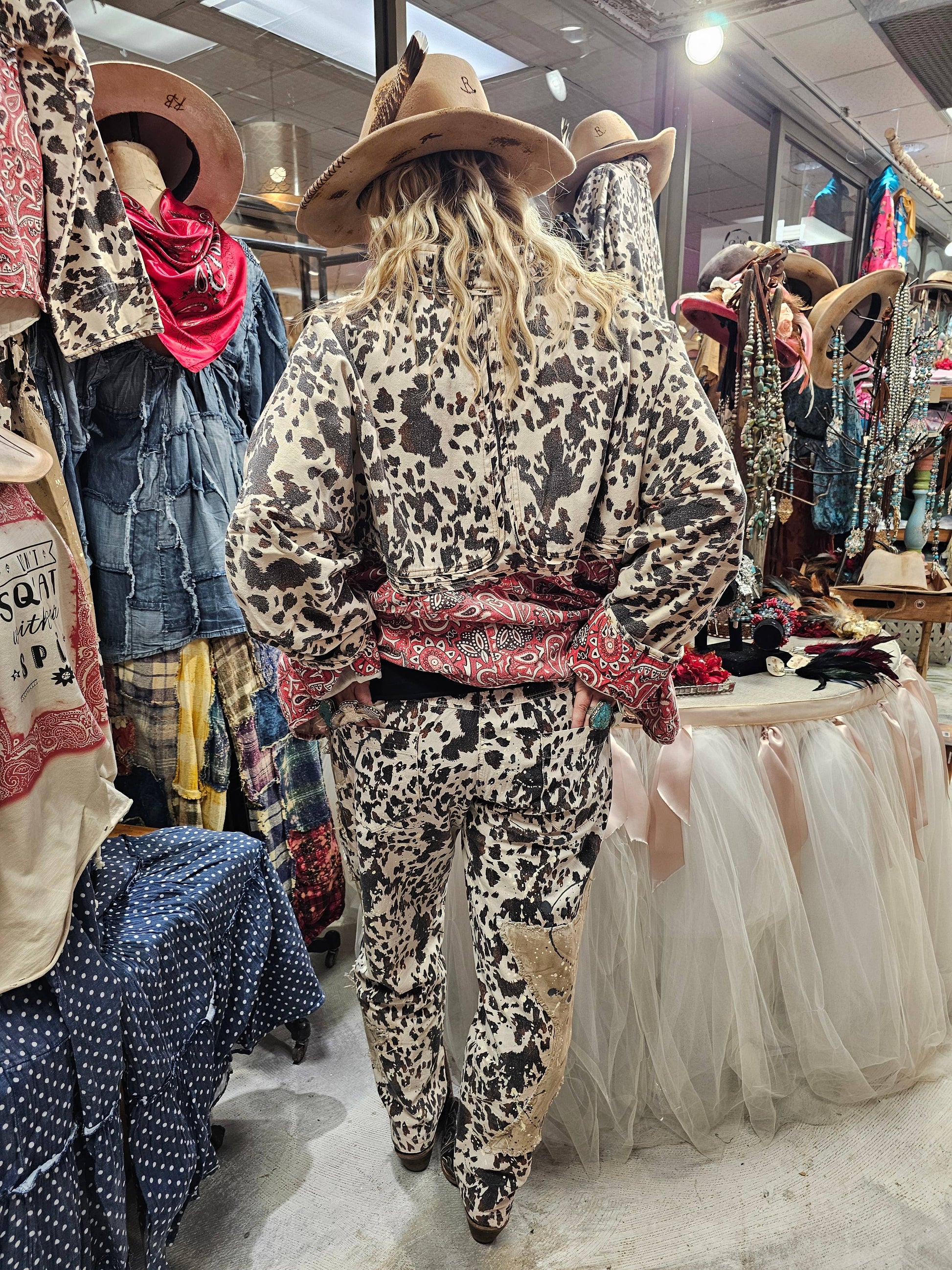 Enjoy this fun bandana and pony print jacket! One size with so much detail in layering stitching. Just the right weight to make it comfortable all year round. Pony pants and Spur shirt available too! *