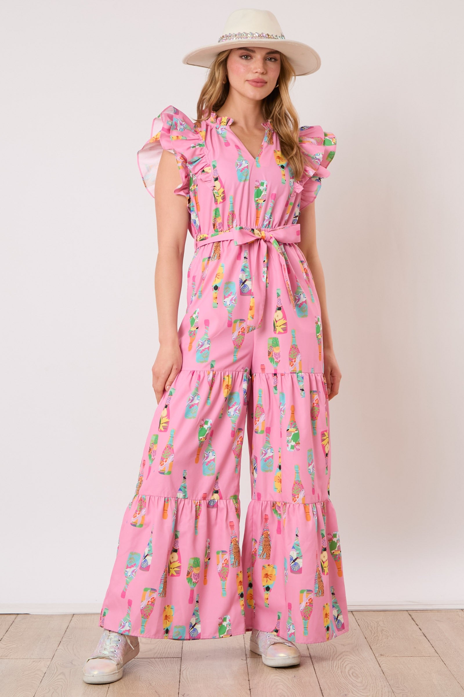Pop open a bottle (or two) of fun with our Popping Corks Jumpsuit! Perfect for wine lovers, this jumpsuit features a playful design of wine bottles. Ideal for parties or a night out, this jumpsuit is a must-have for any quirky fashionista. Cheers to fashion and fun!