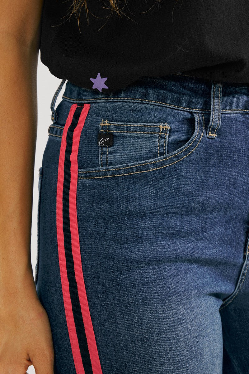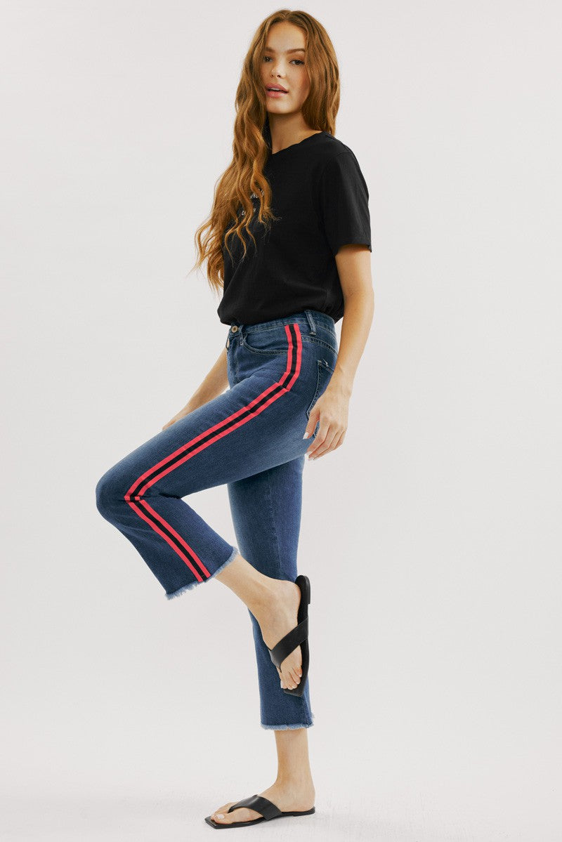 Get ready to rock and roll in these RED STRIPE CROPPED DENIM jeans! With a fun and playful cut, these jean are sure to spice up your wardrobe. Plus, they're totally CUTE!