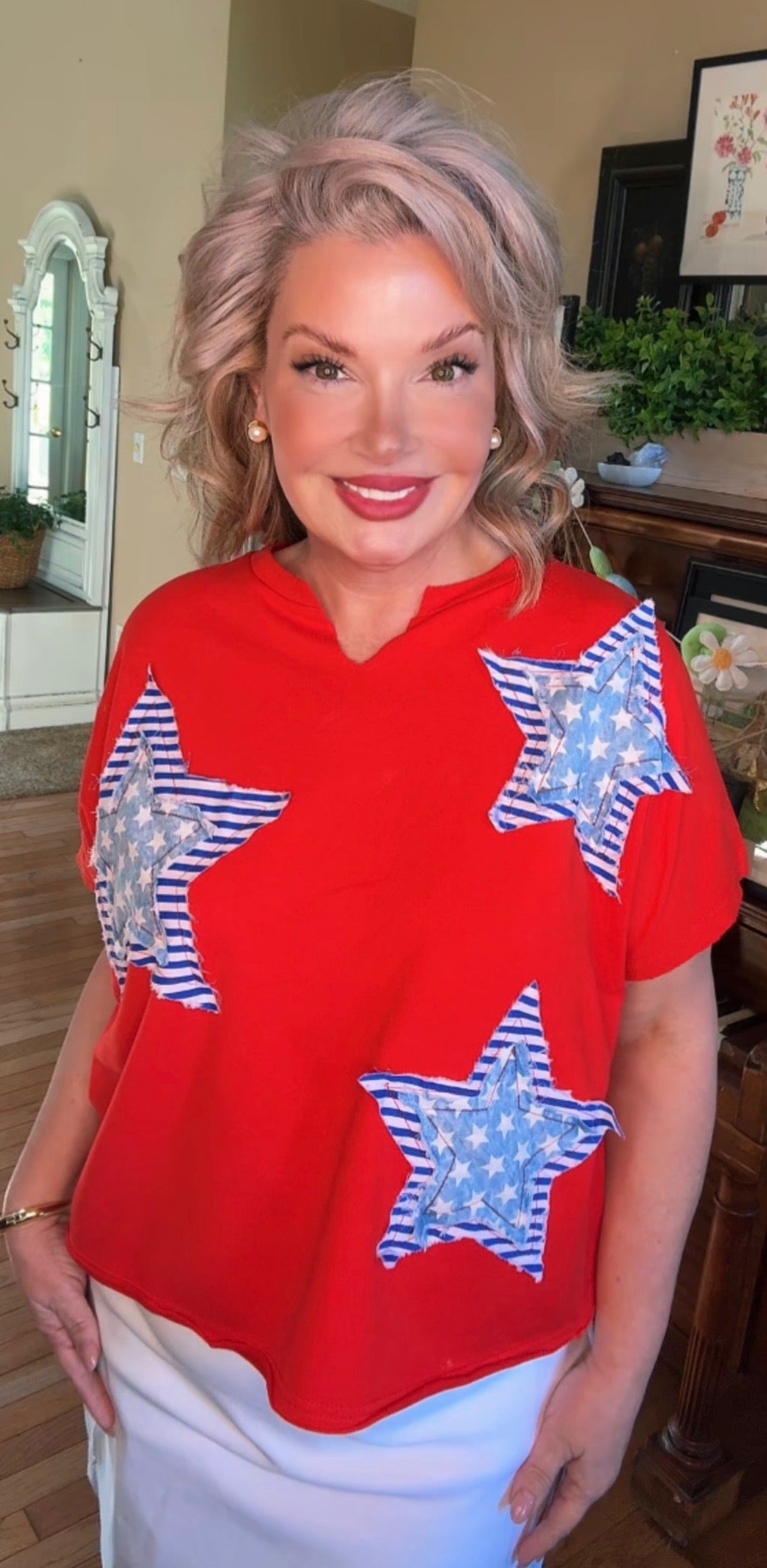 Let your style shine with our MINERAL WASHED STAR PATCHED KNIT TOP! Made with lightweight French terry fabric, this top features a unique mineral wash and mixed fabric star patch for a one-of-a-kind look. Embrace comfortable and trendy fashion with this must-have piece.