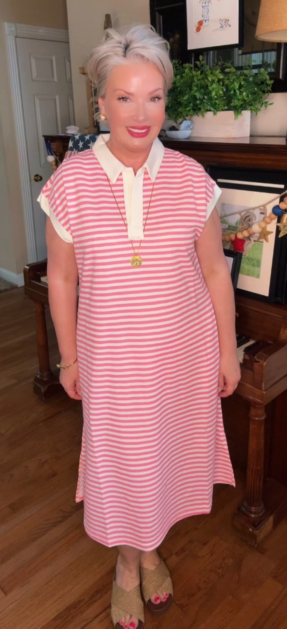 Experience ultimate comfort without compromising on style with our Relaxing in Style Stripe Midi Dress. Featuring a collared V-neckline, sleeveless design, and practical side pockets, this dress offers both a laid-back and polished look. Perfect for all-day wear, pair it with sneakers for a sporty-chic vibe or sandals for a relaxed summer outing. A must-have for boutiques looking to stock comfortable and effortlessly stylish pieces.