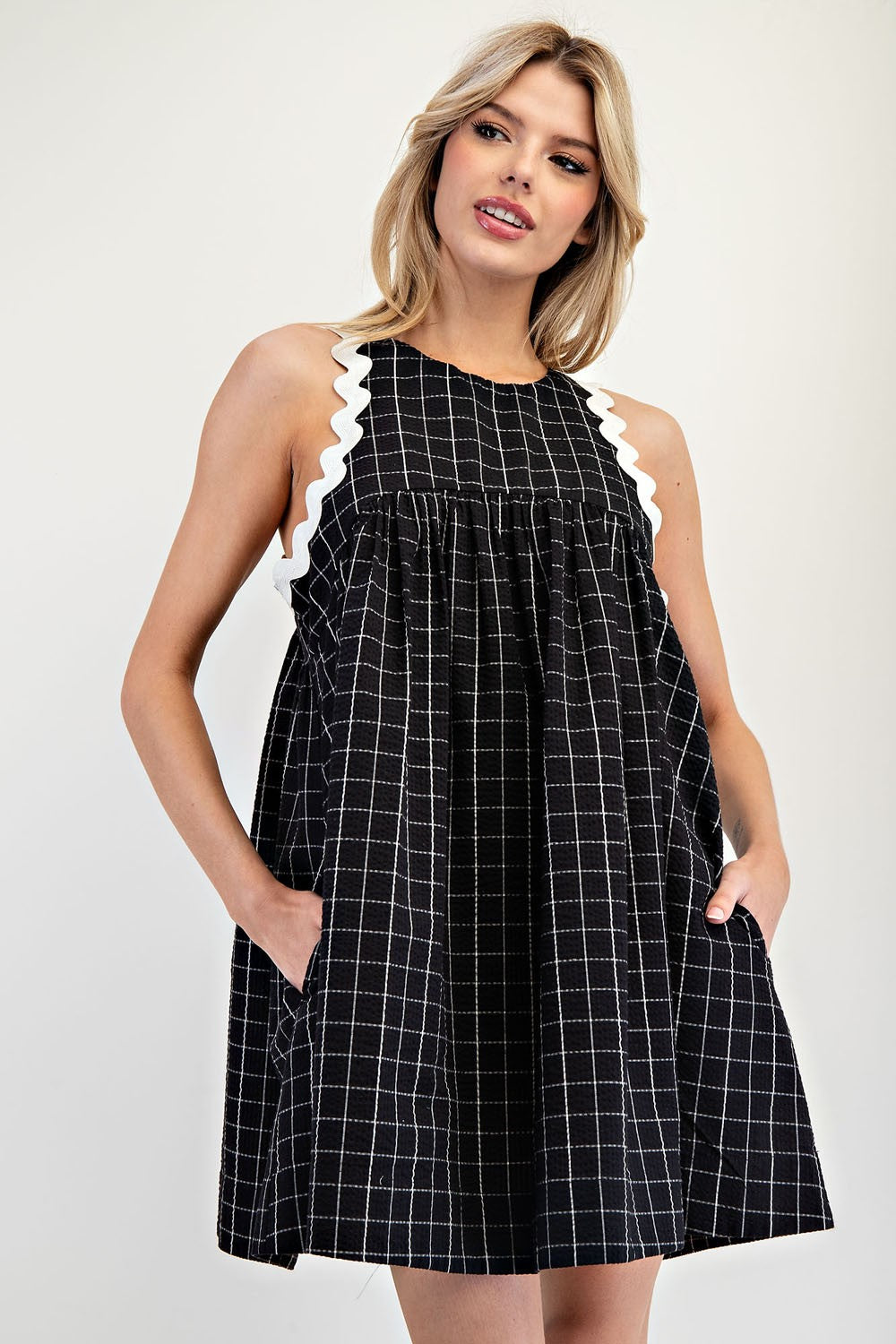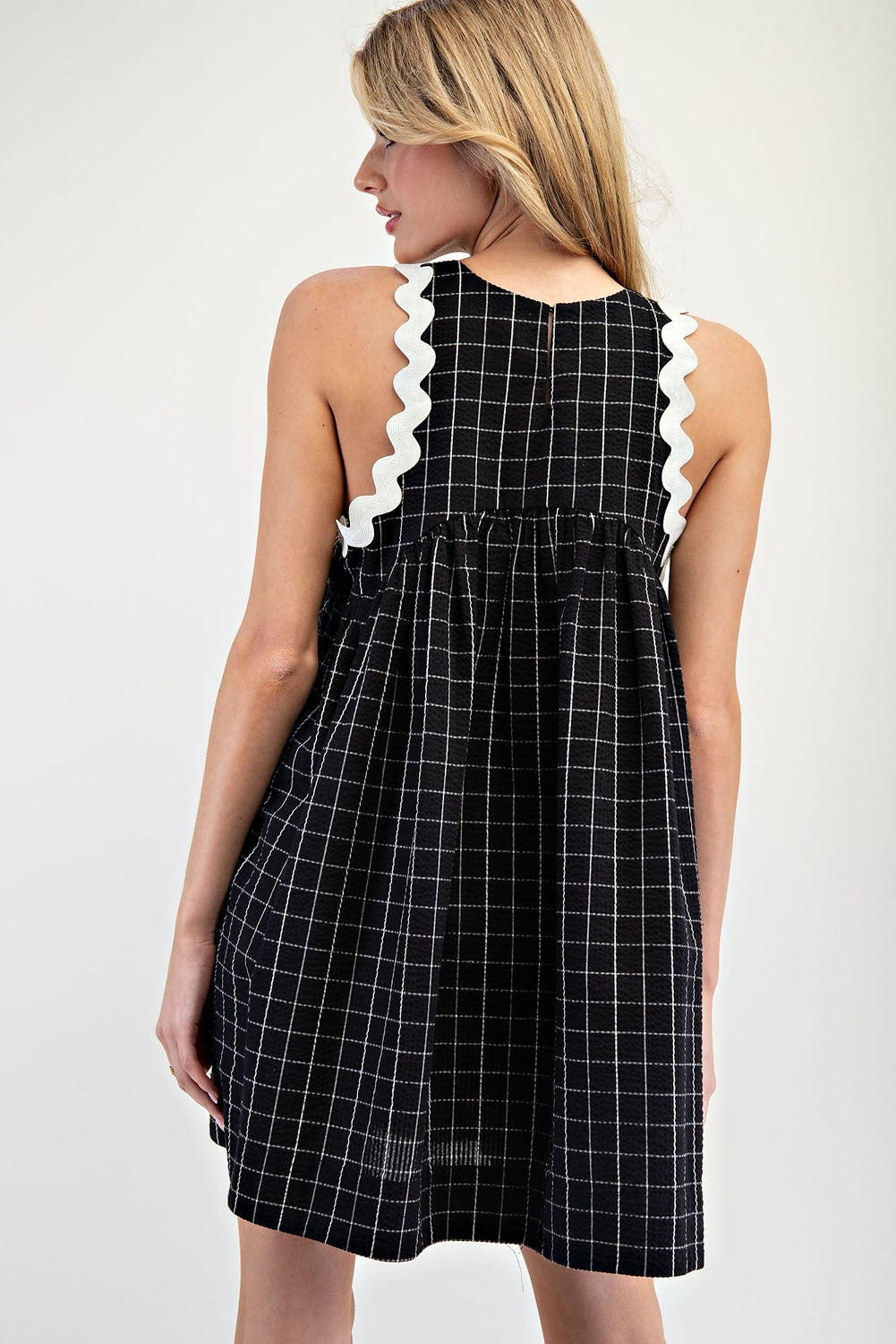 Elevate your wardrobe with the Ric Rac Mini Dress, featuring charming plaid fabric accented by playful ric rac trim and crisp white edging. This dress combines classic patterns with unique detailing for a fresh, stylish look perfect for any occasion. Its flattering mini length adds a youthful touch, making it an irresistible choice to stand out effortlessly.