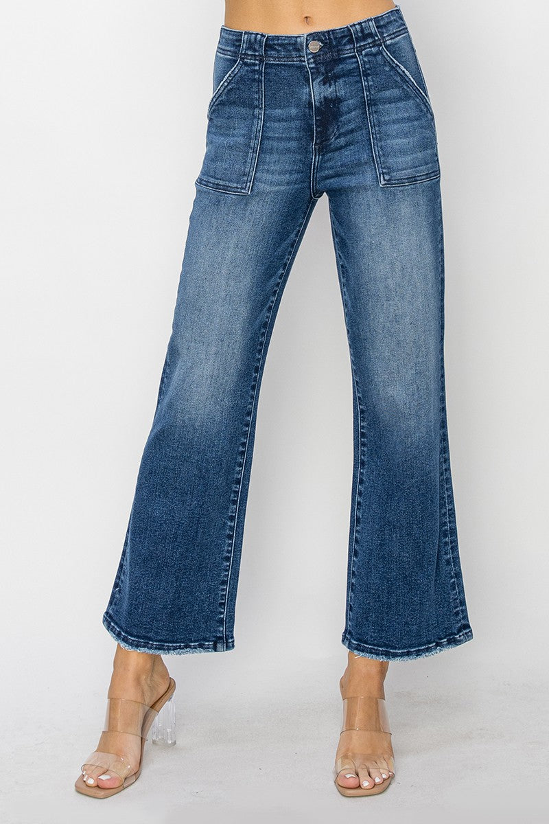 RISEN High Rise Ankle Flare Patch Pocket Jeans RDP5662X