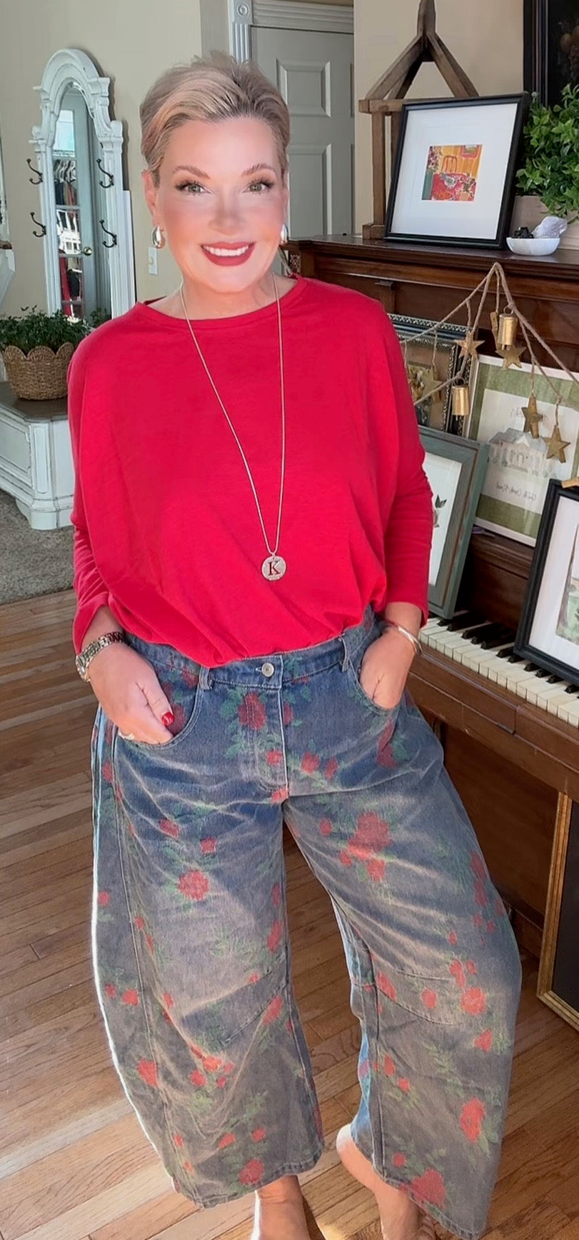 Elevate your denim collection with these Rose Denim Barrel Jeans, featuring a unique rose print that adds a fresh, feminine touch to classic style. The barrel cut offers a flattering silhouette that balances comfort and trendiness, perfect for day-to-night wear. Crafted for both style and ease, these jeans make a bold statement while ensuring all-day comfort.