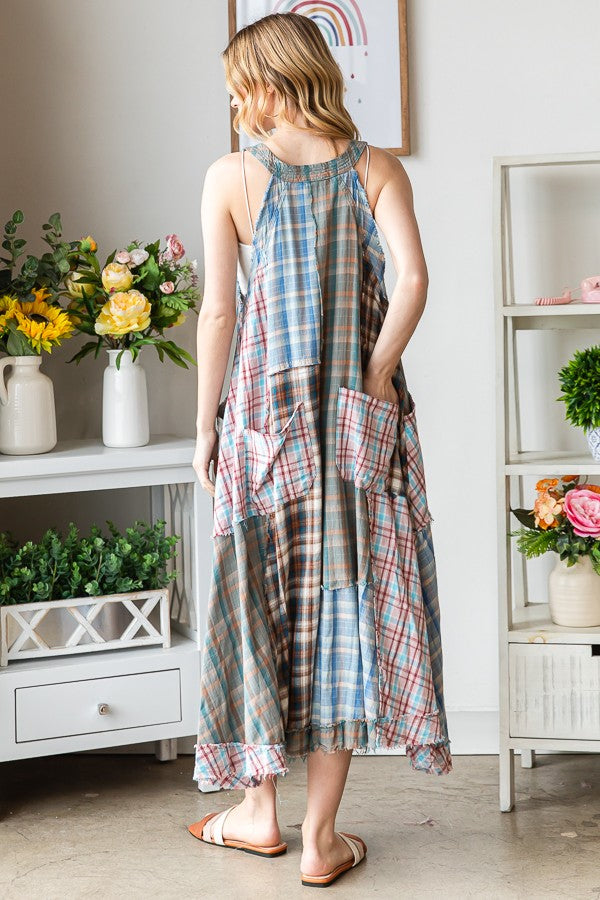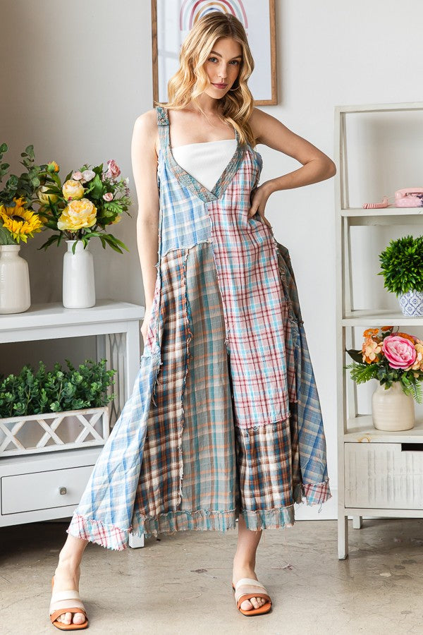 Experience the ultimate mix of style and comfort with our Second Glance Plaid Mix Jumpsuit! This jumpsuit is not a dress, but a versatile and flowy jumpsuit that will turn heads. Its washed plaid design and oversize back pocket detail add a unique touch to your look. Say goodbye to boring outfits and hello to our one-of-a-kind jumpsuit!