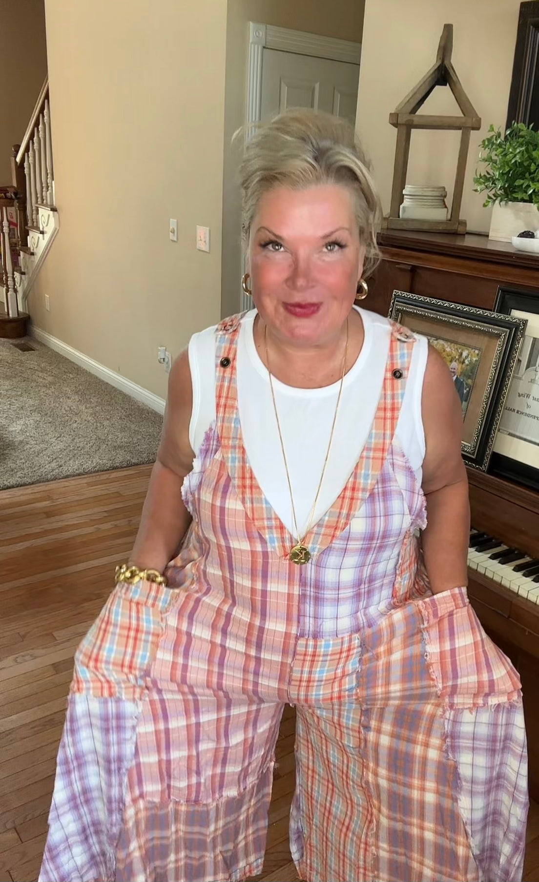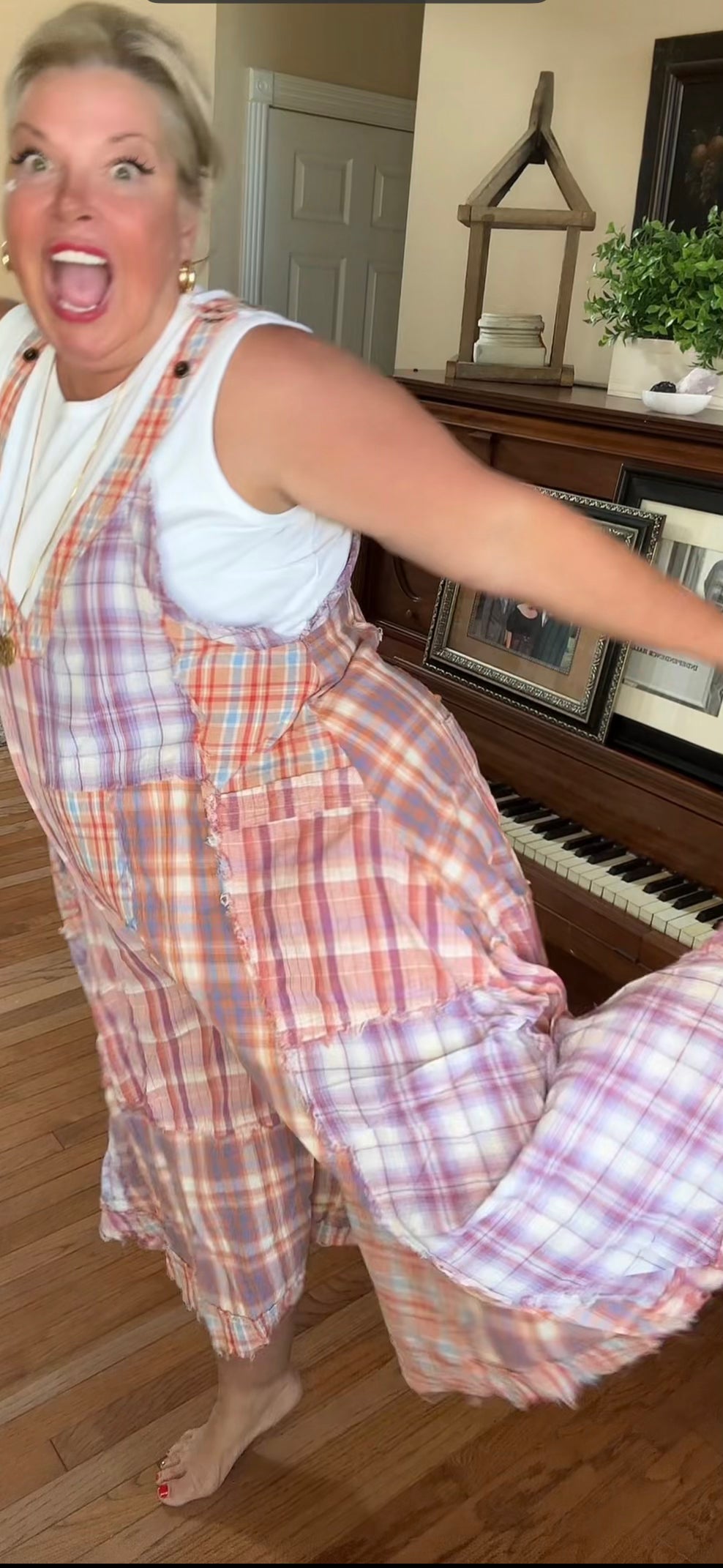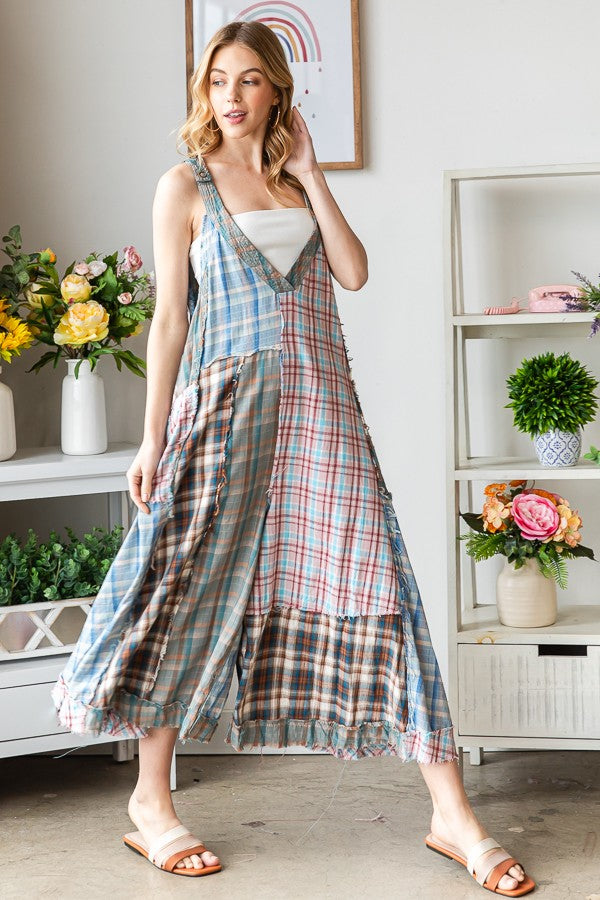 Second Glance Plaid Mix Jumpsuit