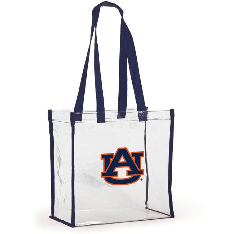 Clearly a huge fan! This see - thru totes allows you to breeze into the stadium and show your spirit all at the same time. Stadium approved, nfl regulation sized. Long handles and matching team color trim accent thick, clear vinyl. Logo is front and center to showcase your team allegiance. Auburn tigers. Size: 12w x 12h x 6d inches. Handles: 22" long with an 11" drop.