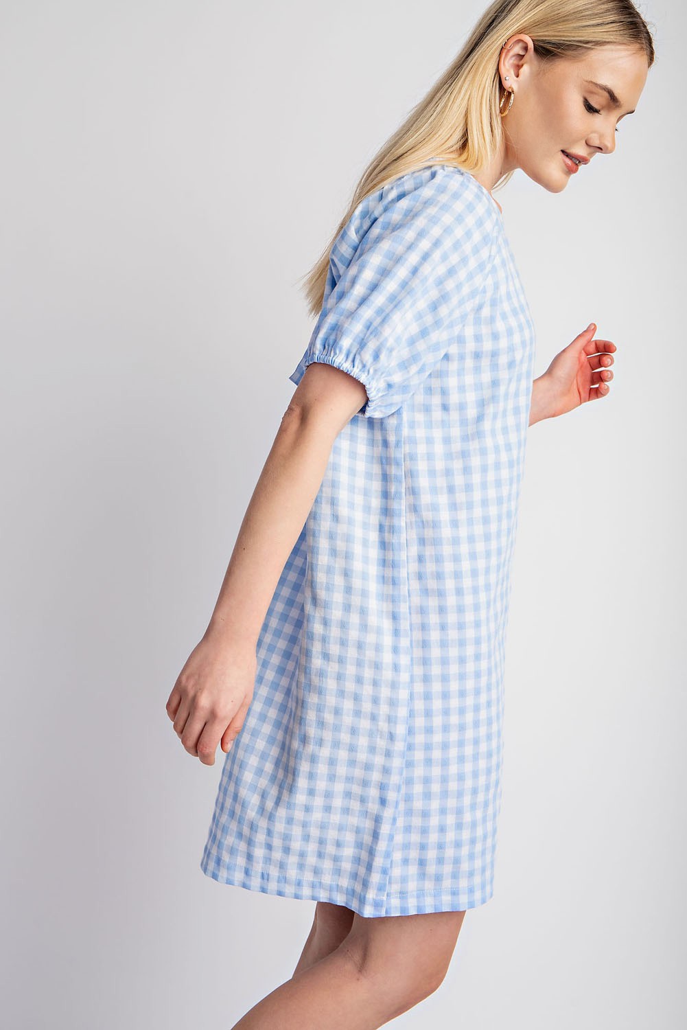 Add a touch of whimsy to your wardrobe with The Dorothy Dress! This gingham mini dress features a charming back bow that is sure to turn heads. Perfect for any occasion, this dress will have you feeling stylish and playful.