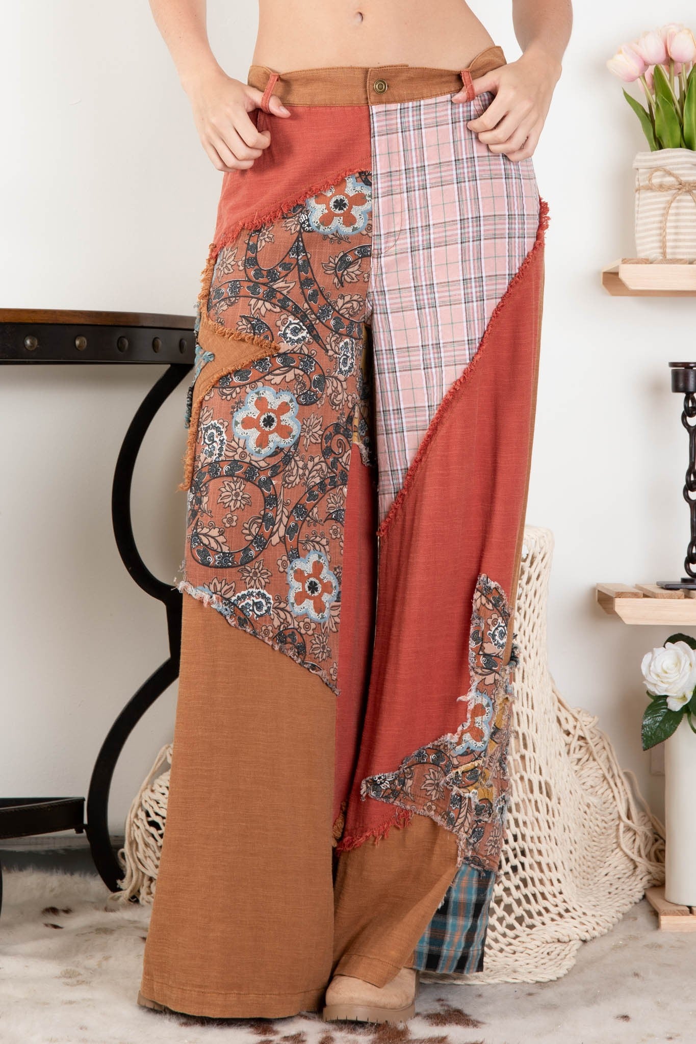 Crafted for comfort and style, these Funky Patchwork Pants feature a wide leg design and unique patchwork patterns. Embrace your individuality and make a bold fashion statement with these versatile and eye-catching pants. Perfect for any occasion, these pants are a must-have for any fashion-forward wardrobe.