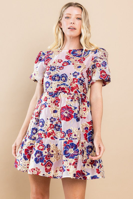 Gorgeous and glamorous, The Mackenzie Dress is made for the modern-day sophisticate. Sparkling metallic gold accents add a luxurious edge to a timeless floral print, while the puffy sleeves ensure you stand out from the crowd. Slip into this chic cocktail dress and shine at any special occasion.