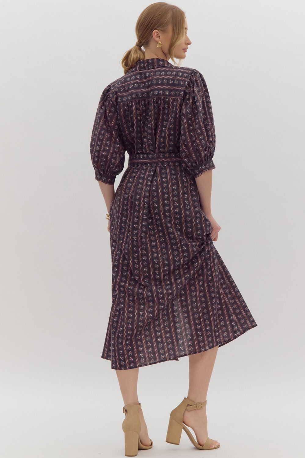 Expertly crafted, this elegant midi dress features a printed design and button down collared neckline. The half sleeves and self-tie waist add a touch of sophistication while the pockets at bust provide convenience. The lightweight, non-sheer fabric is perfect for any occasion.
