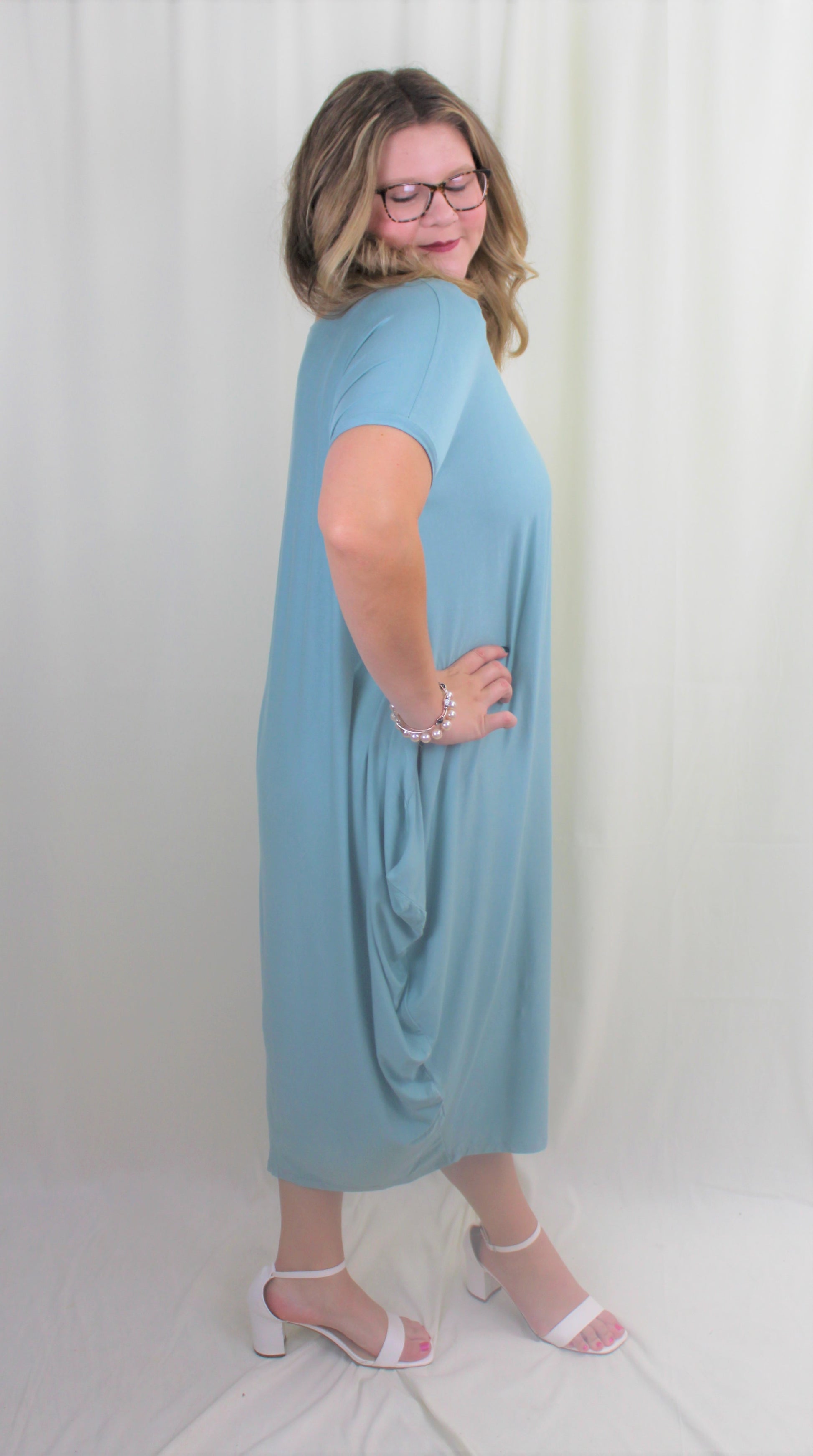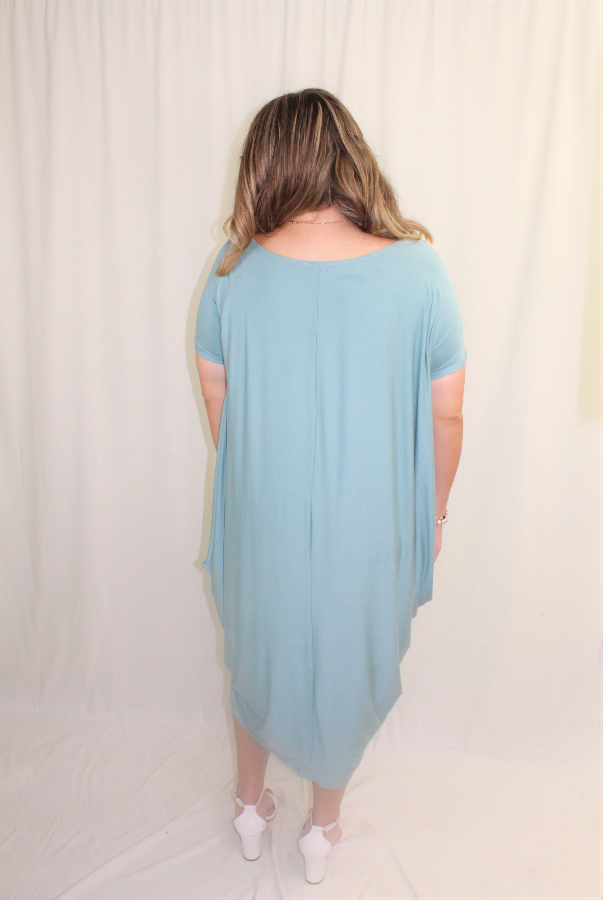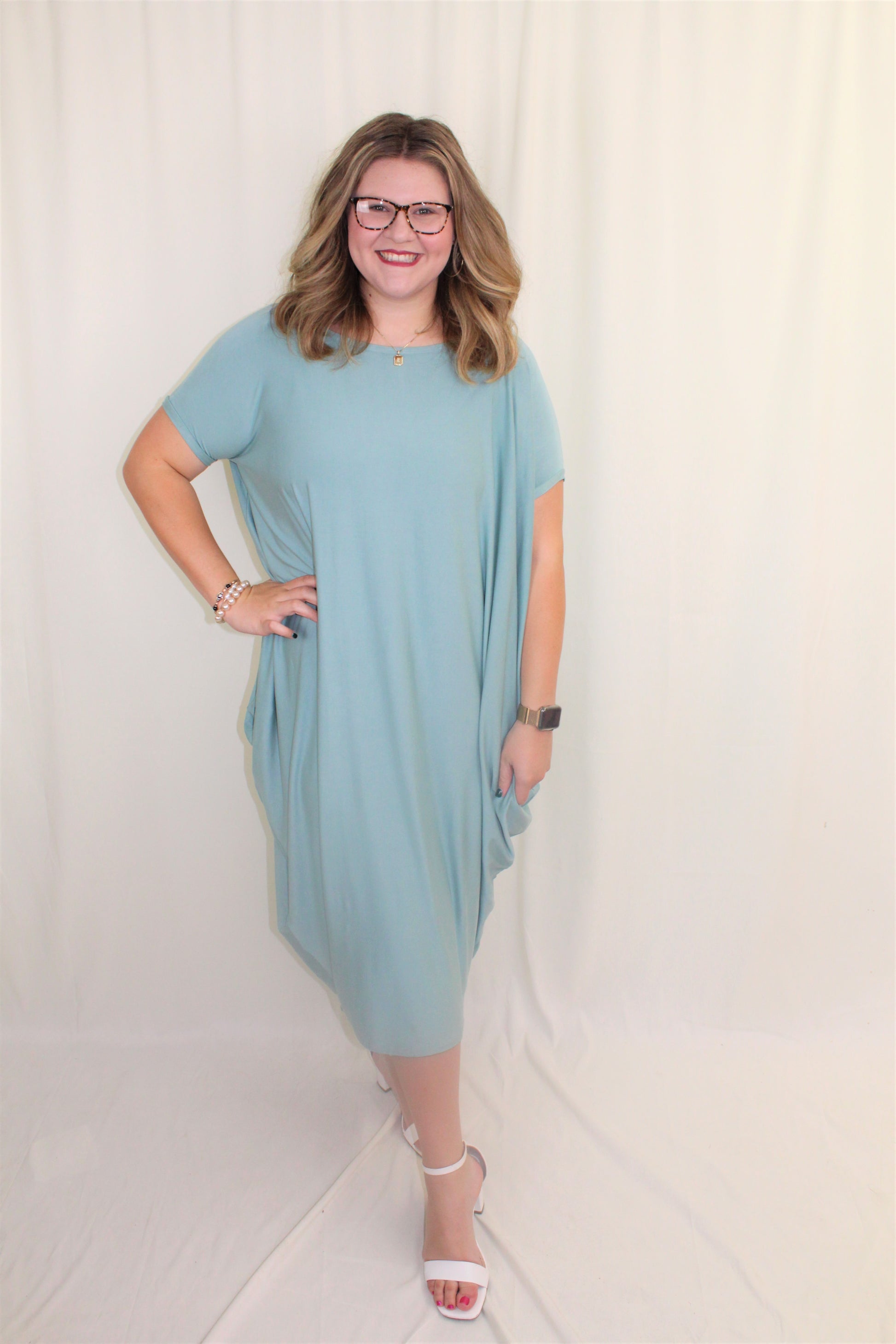 This Seafoam Dress will become a staple of your wardrobe! It's oversized, butter-soft, and midi length - perfect for lounging around or looking good on the go. Plus, its pretty seafoam hue will surely turn heads!