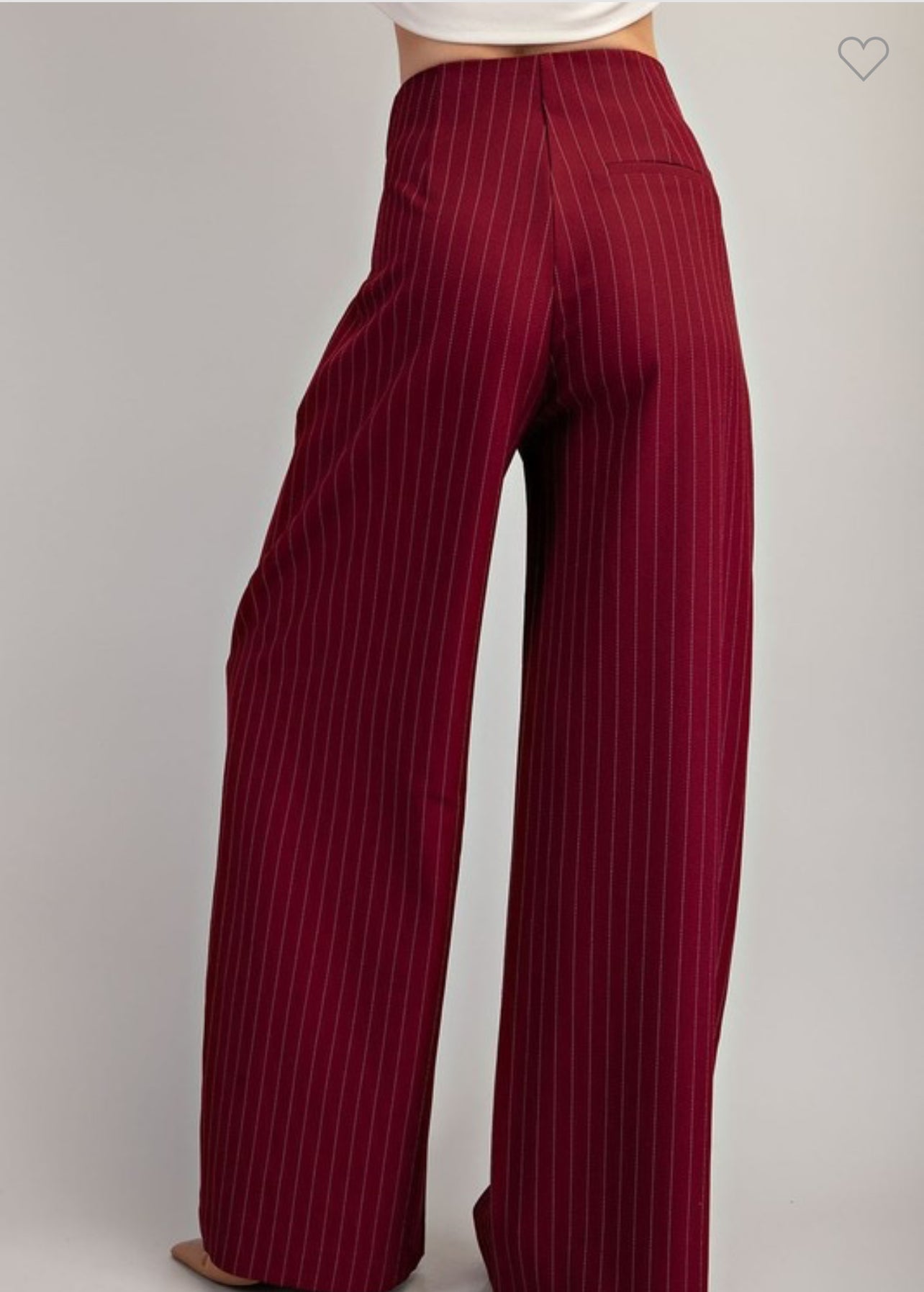 These high-waisted business pants come in a stylish stripe design with a rich burgundy color. Offering both fashion and functionality, these pants will elevate any professional look and provide a flattering fit. Incorporate versatile and trend-setting style into your work attire.