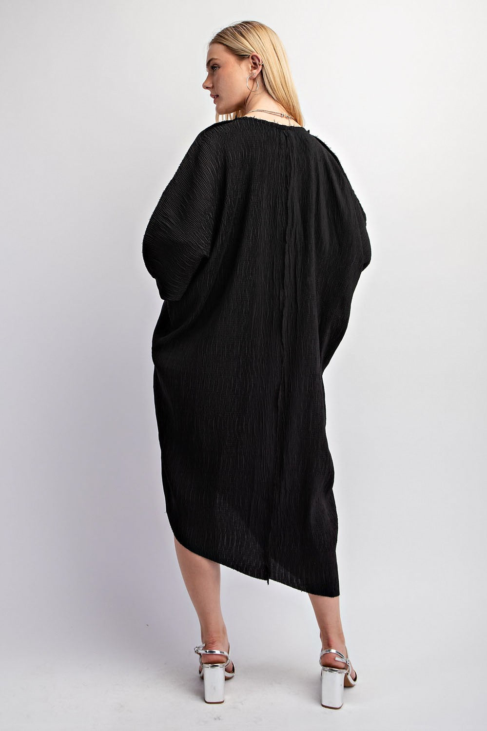 Unleash your daring side with our This Ain't Texas Dress! This printed midi dress boasts an asymmetrical v-neck and rough-edged finish, perfect for adding a touch of edginess to any outfit. Simply pull it on and get ready to make a statement. Take a risk and stand out from the crowd in this bold and adventurous dress!