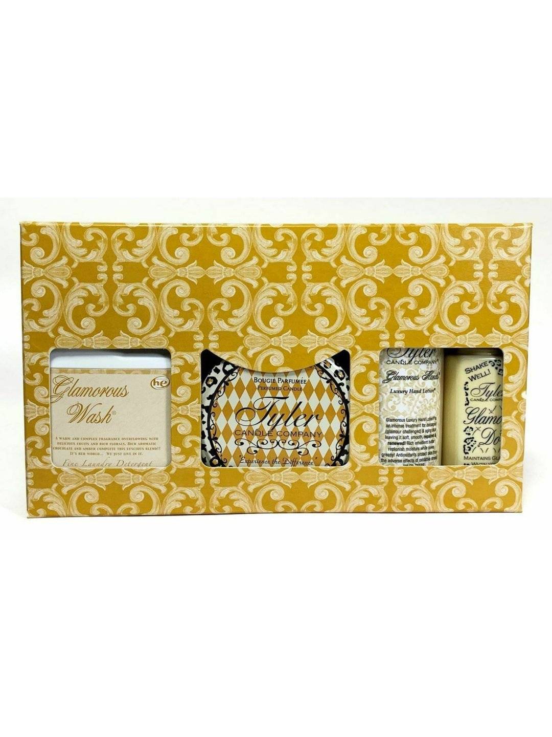 Share your love of Tyler's Diva today! This four-piece gift pack includes one of each; 1.2 Glamour Do Spray, 4oz Glamour Wash, 3.4oz Jar Candle, and Travel Hand Lotion. A great way to explore and share Diva® with A warm and complex fragrance overflowing with delicious fruits and rich florals. Rich aromatic chocolate and amber complete this luscious blend!! It’s her world . . . we just live in it.