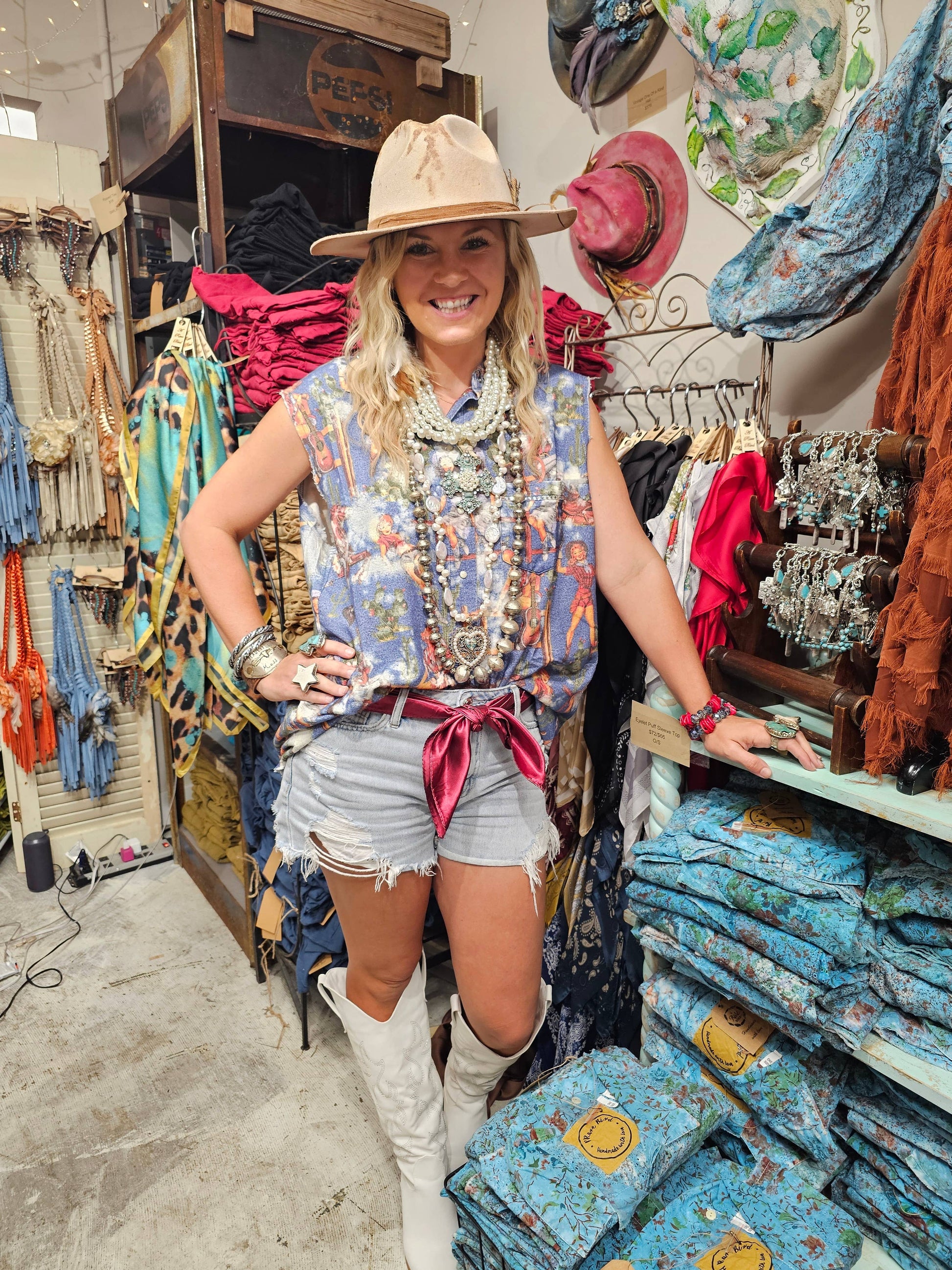 So much fun!! Yippee! This adorable western distressed Flannel vest is certainly one for the books! Fits 0-2x and can be buttoned, tied or worn open and loose. Layer over all Rare Bird things to make a truly exciting look